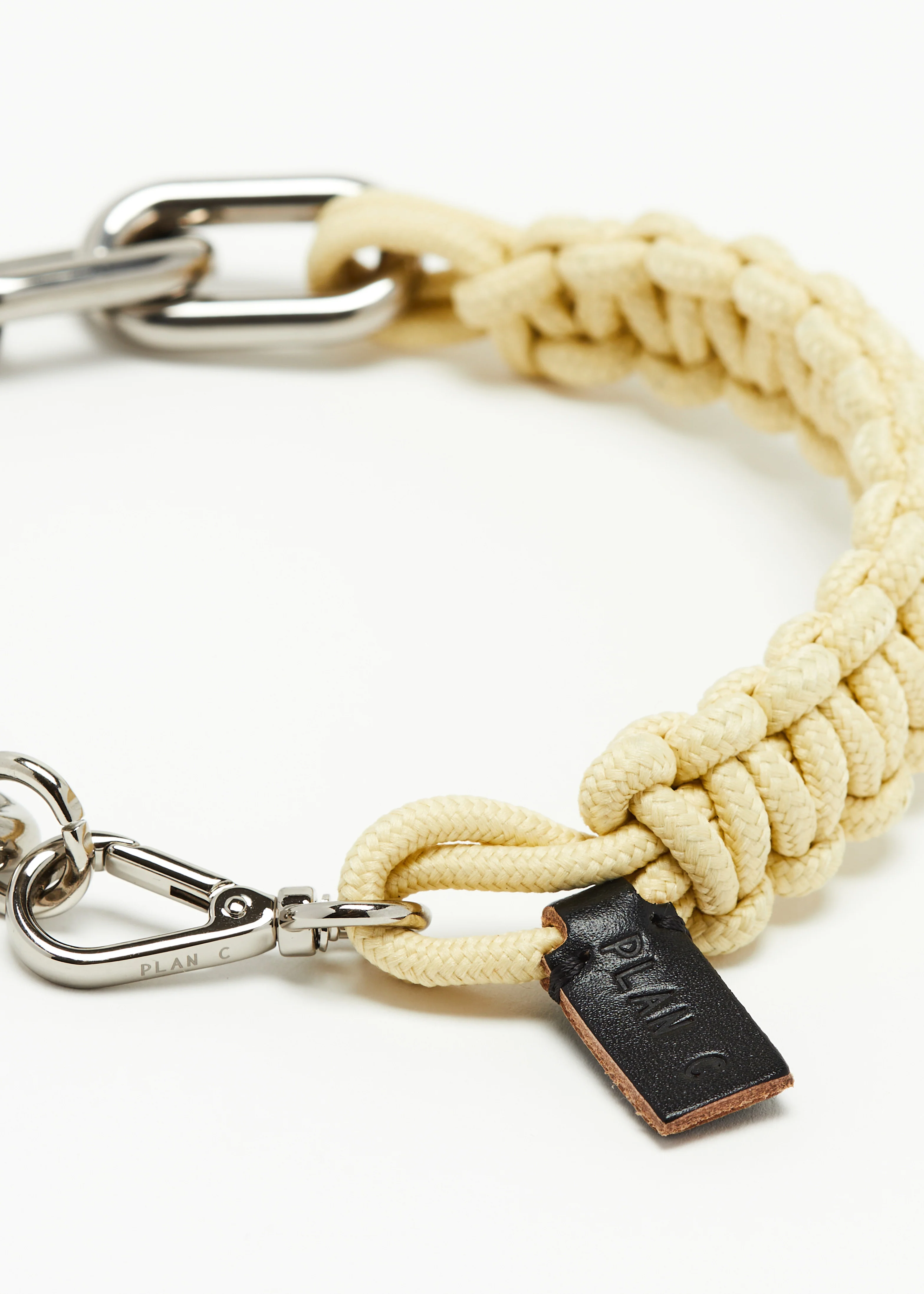 Eggnog braided lanyard and chunky chain necklace.