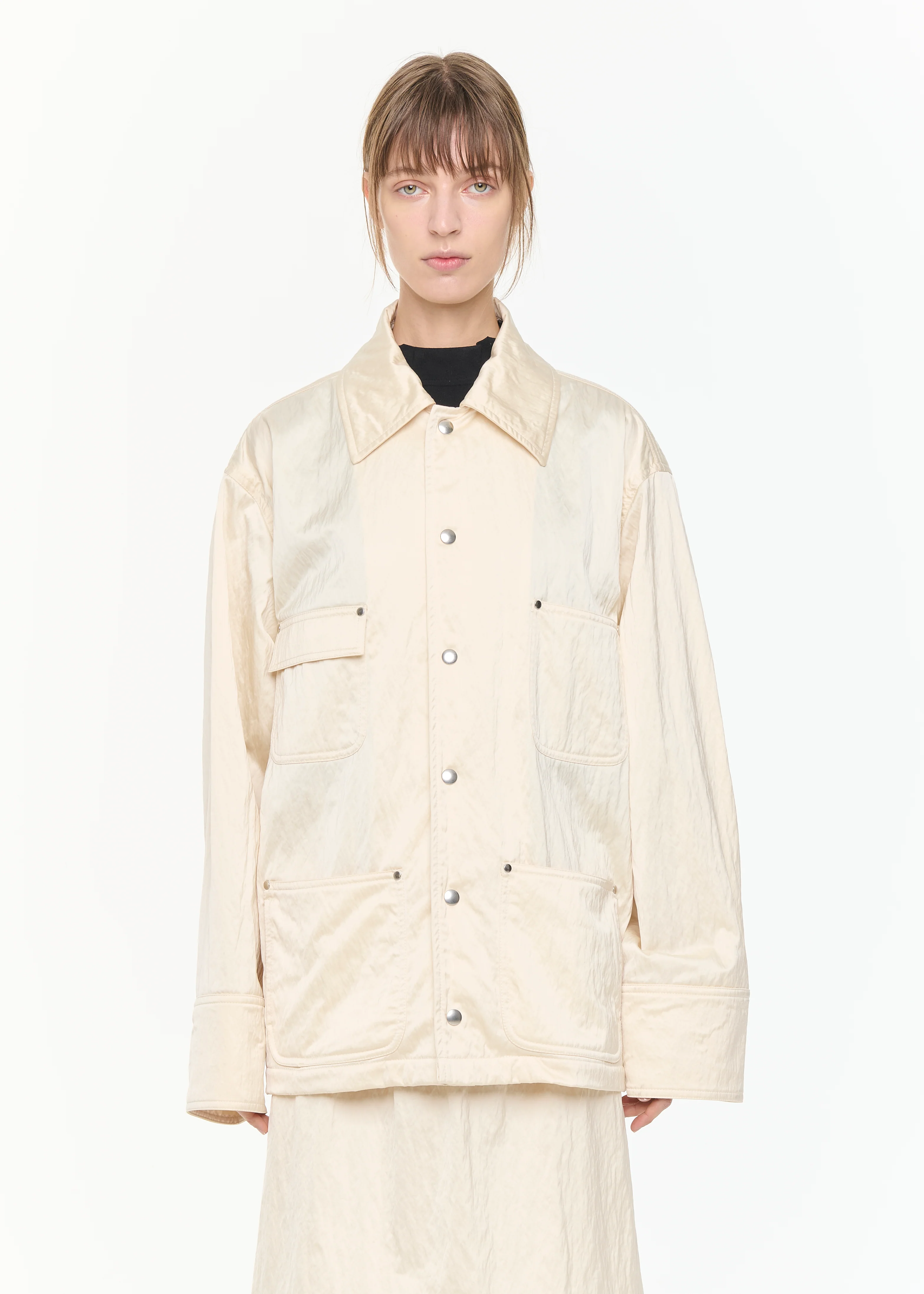 Eggwhite nylon jacket. Four front pockets, front snap buttons.