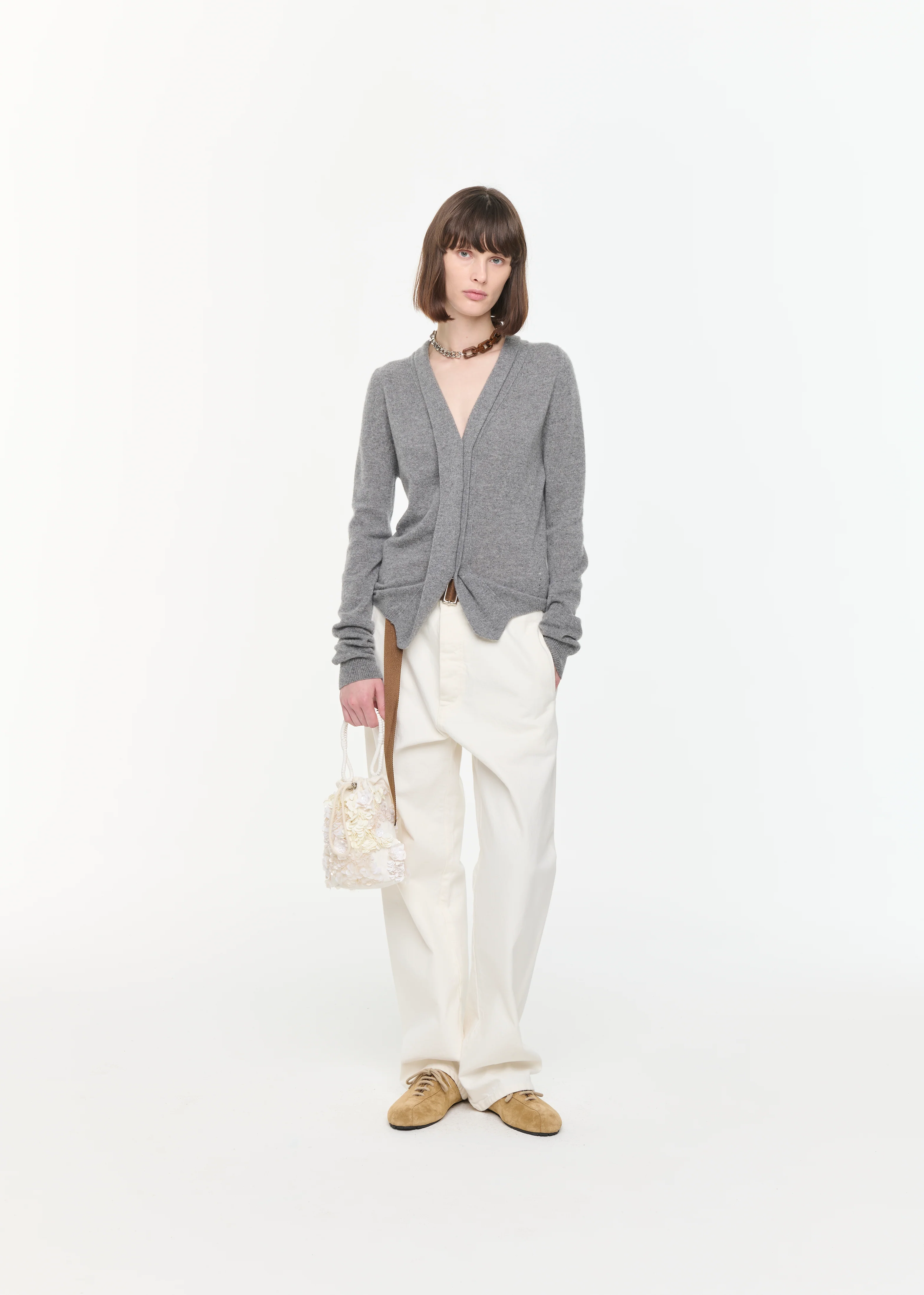 GREY MELANGE CASHMERE CARDIGAN