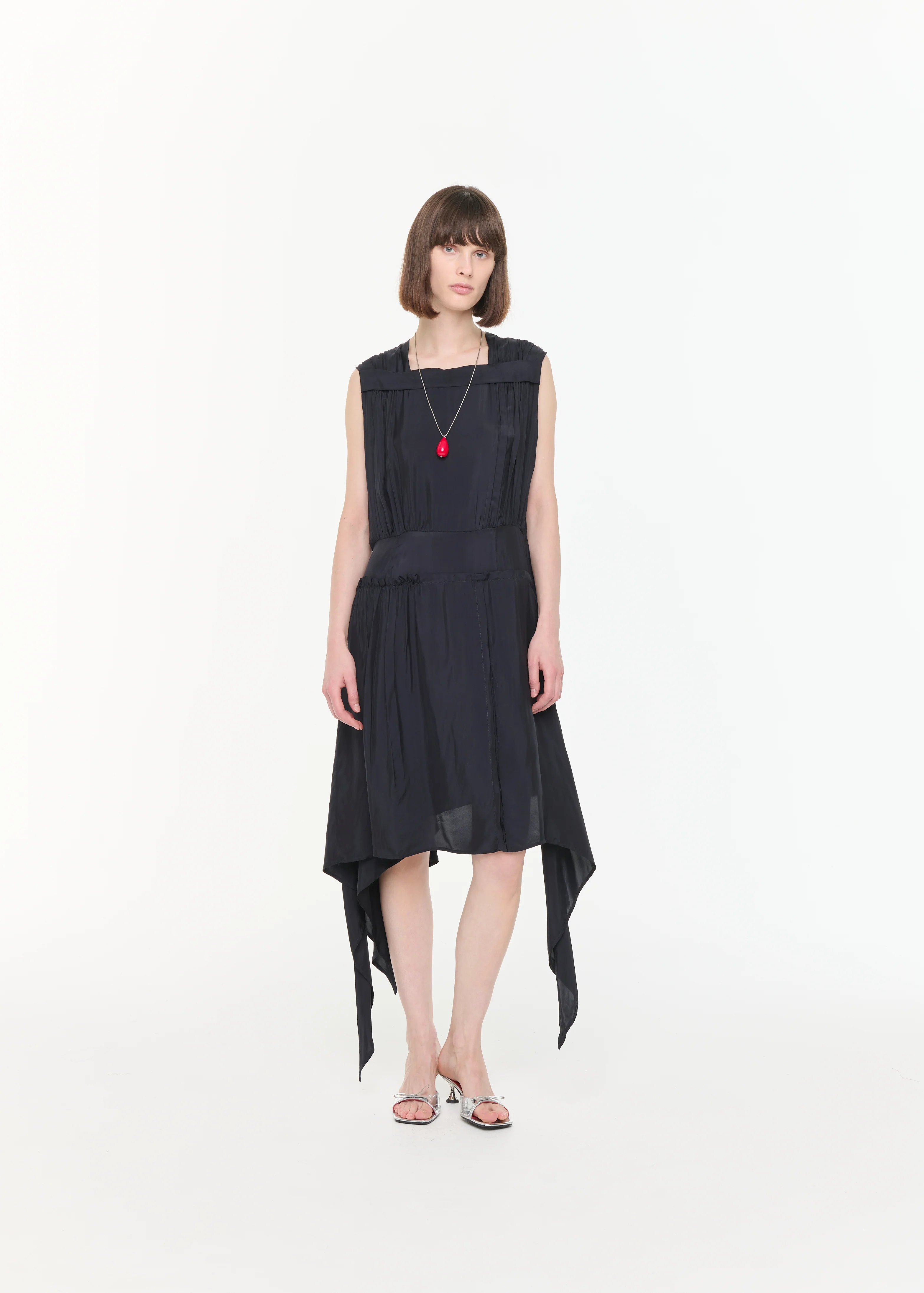-65%MIDI ASYMMETRIC TWILL DRESS—