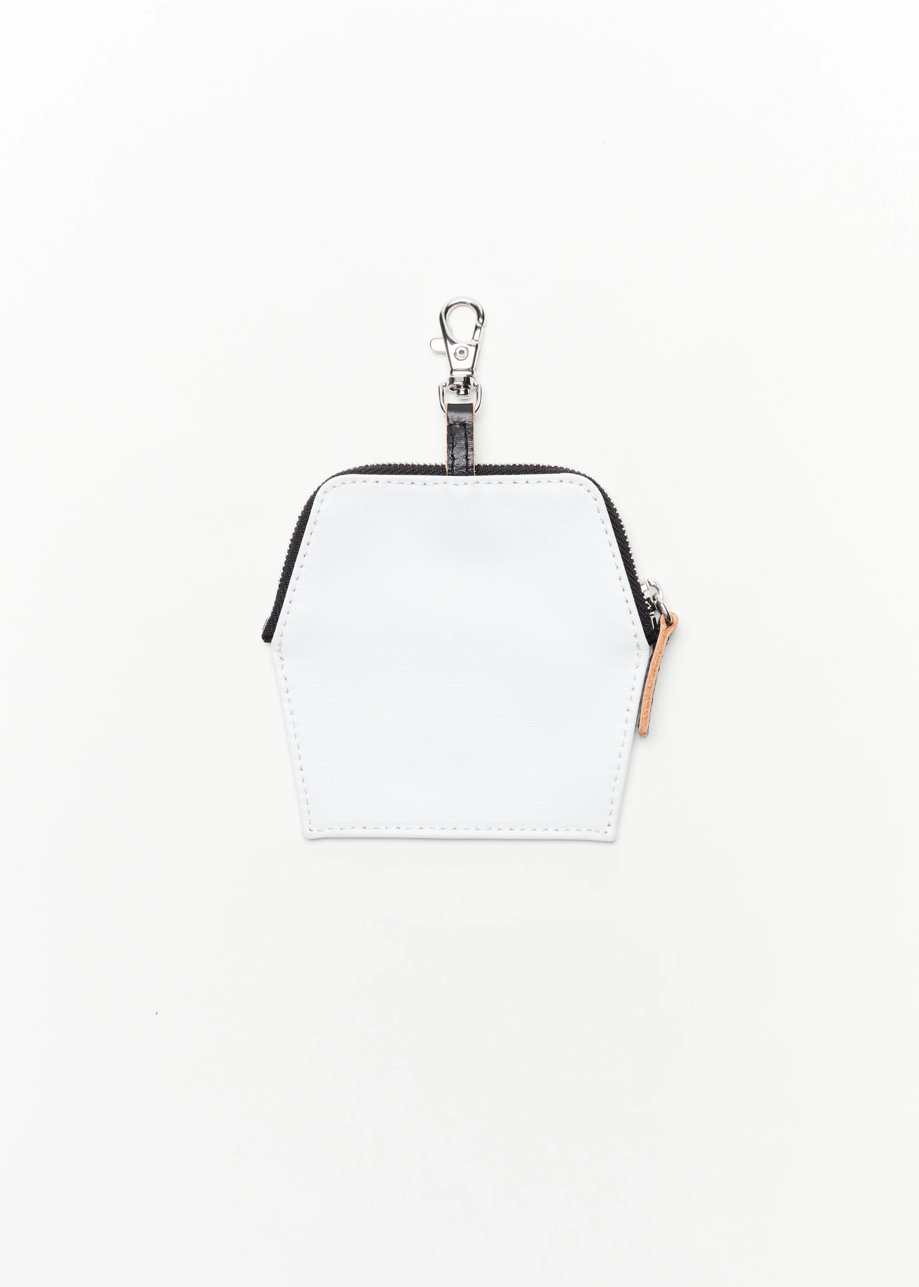 White cross body belt with mini detachable zip wallet with Pili and Bianca print.