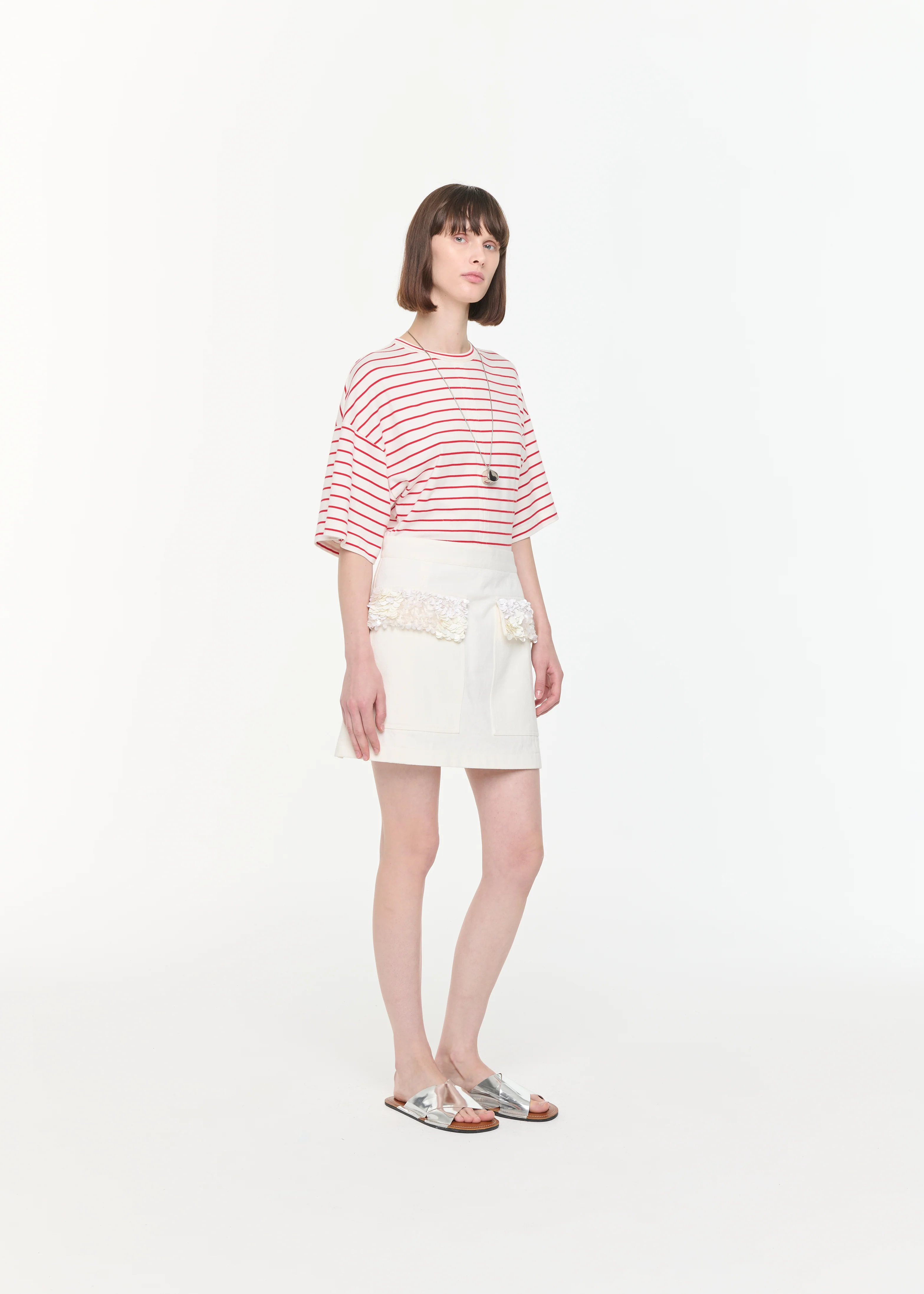 WHITE DRILL MINI SKIRT WITH SEQUINS