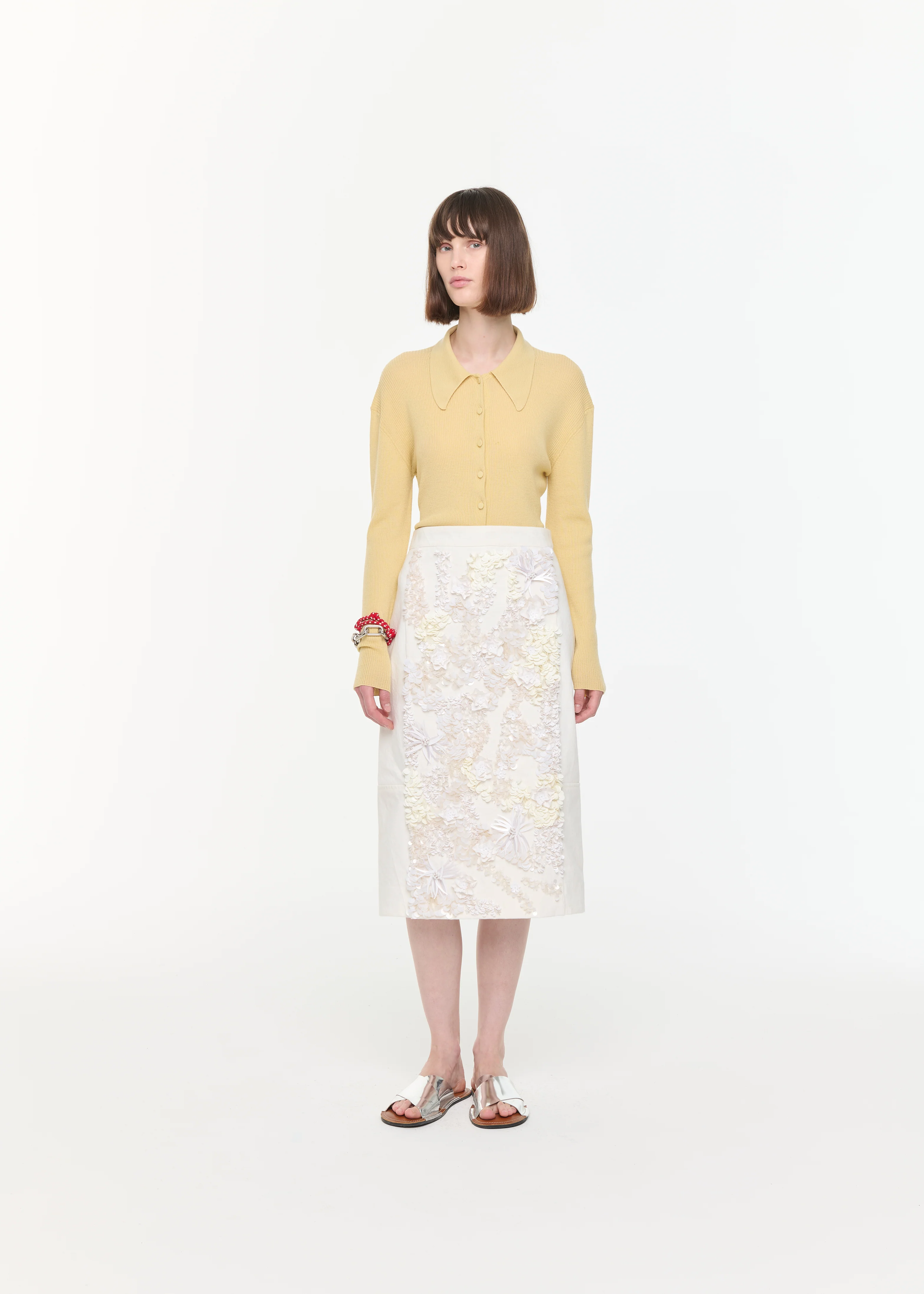 WHITE DRILL SKIRT WITH SEQUINS PANEL