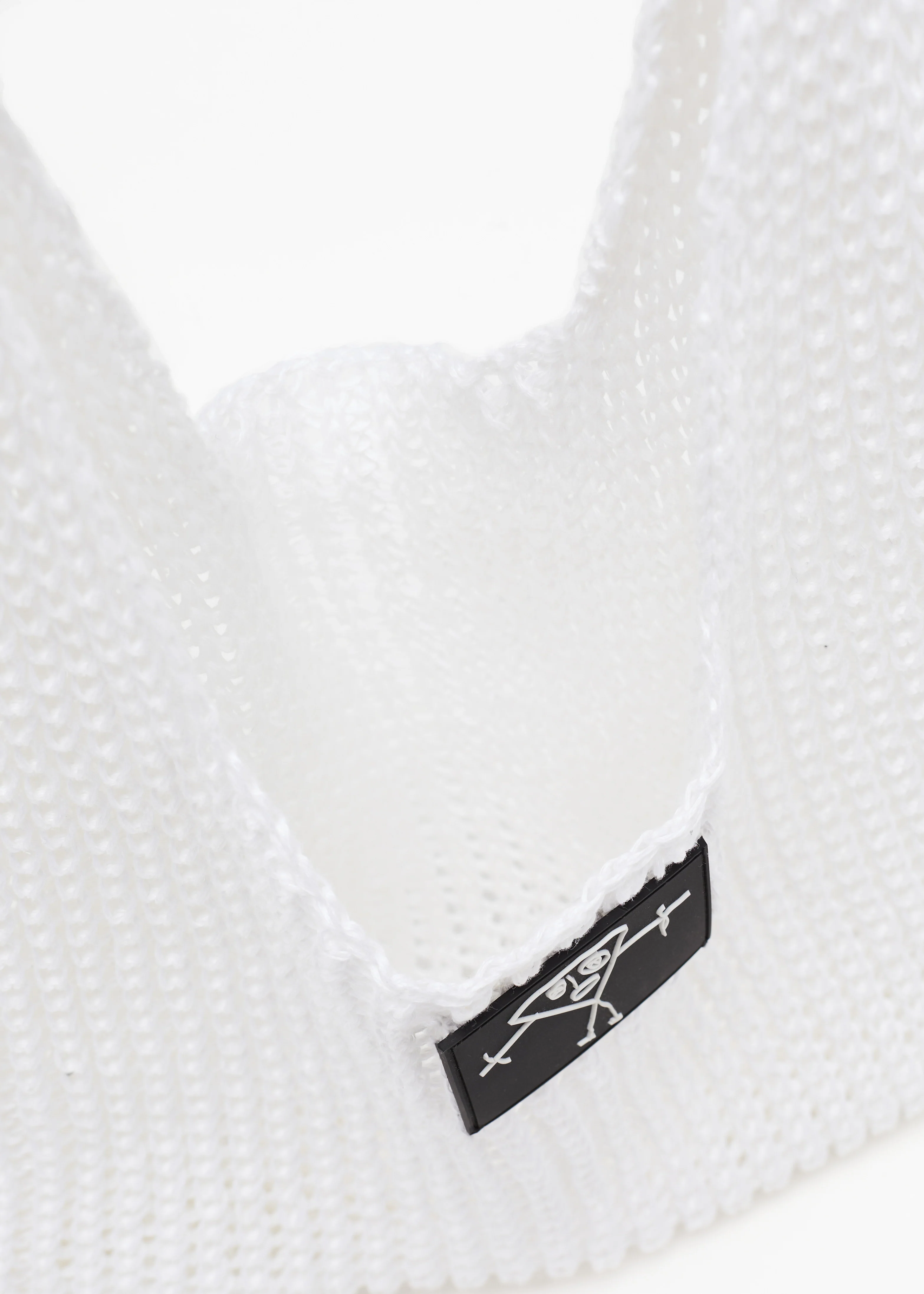 Linen mesh net bag with polyester handle. Bianca rubber patch